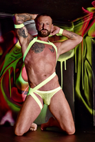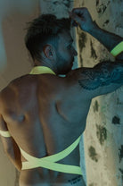 - Moving across exposed skin like fluorescent paint, our neon harness will awaken you to experiences like no other. Crafted from a supple elastic to illuminate every curve and muscle under the disco lights.